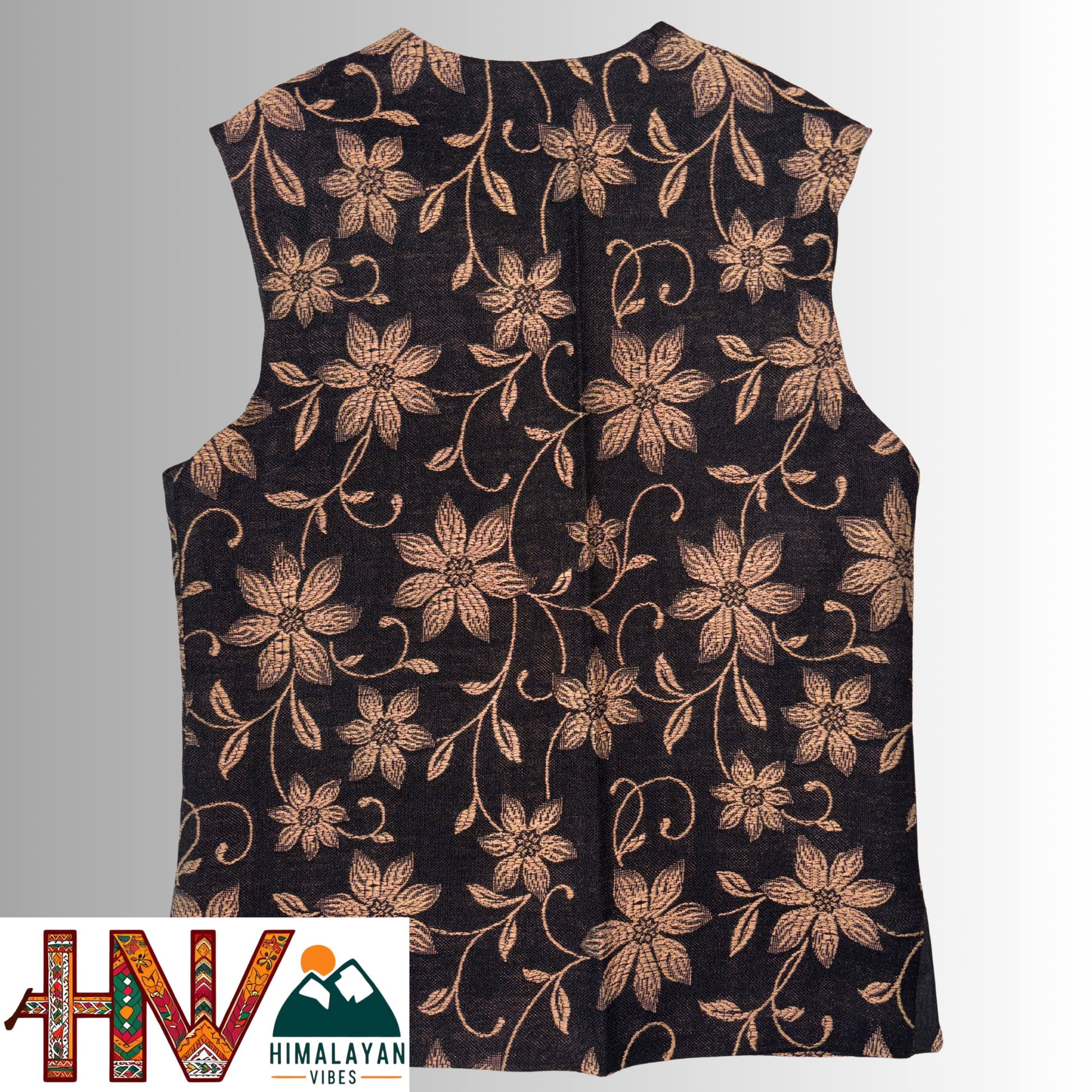 Women Shawl Black Color Himachali Sadri with Flower pattern – Traditional Waistcoat by Himalayan Vibes (Size)