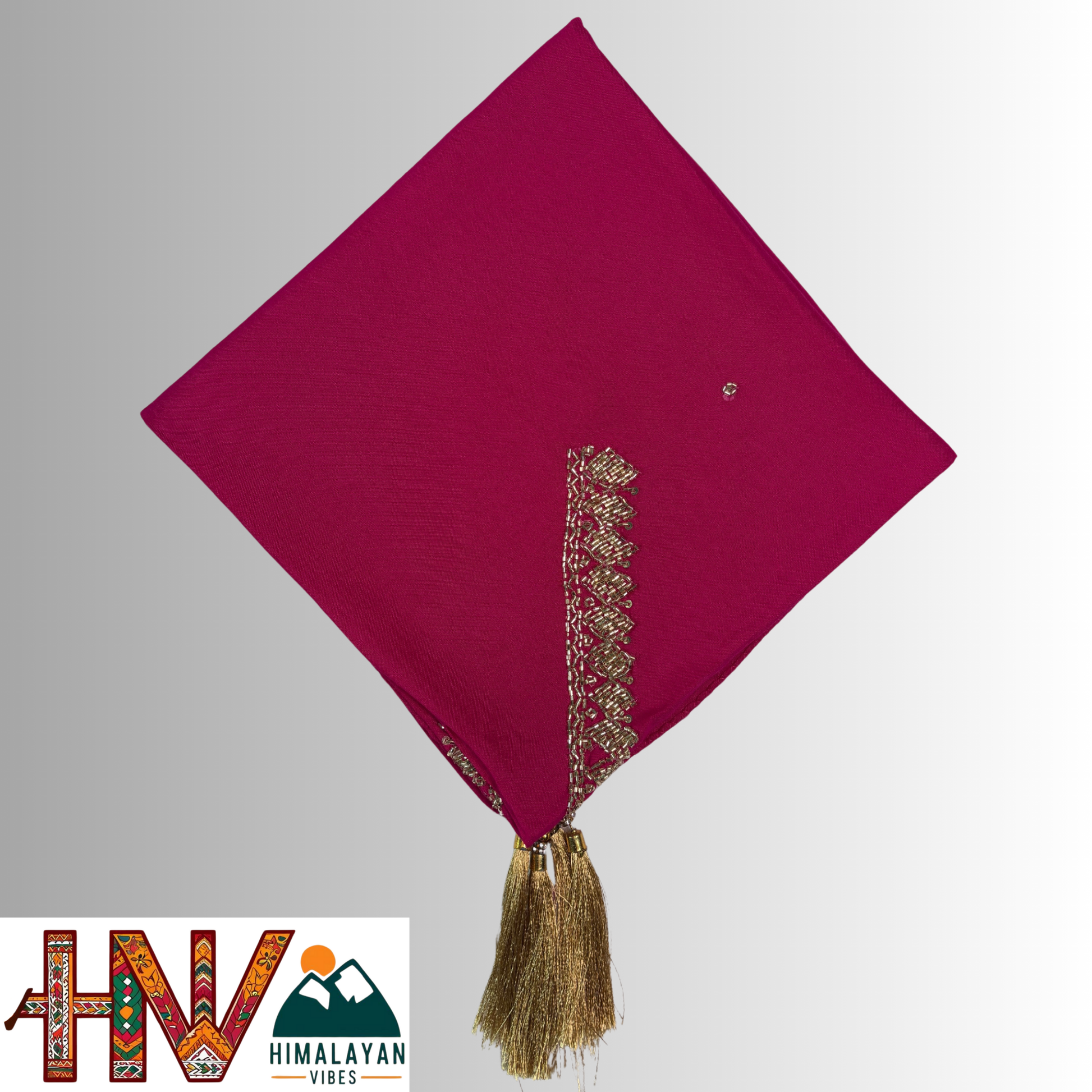 Handcrafted Himachali Rani Pink Dhatu with Golden Embroidery – A Unique Embroidered Head Scarf