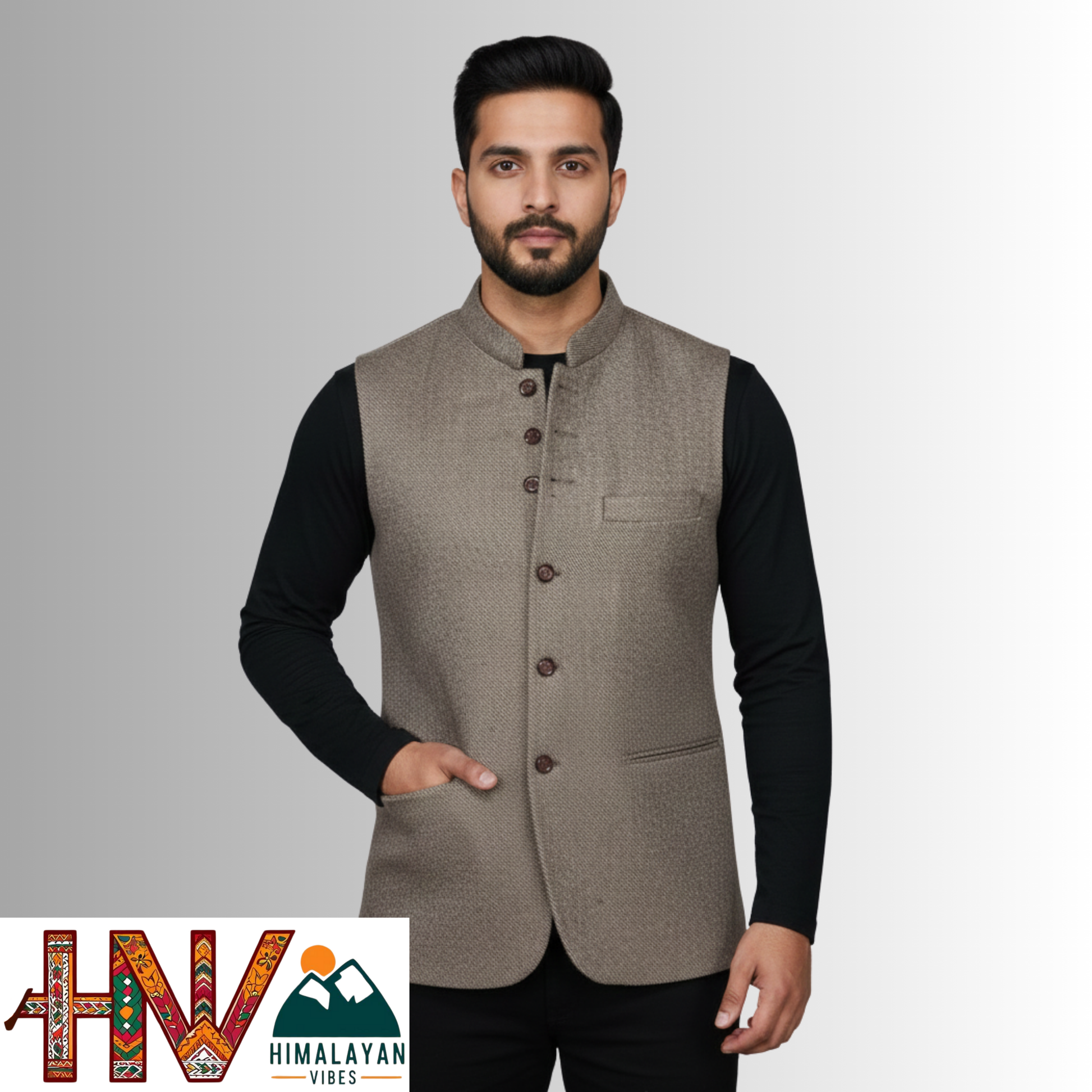 Handcrafted Taupe Brown Woolen Jacket for Men | Traditional Himachali Craft | Stylish Winter & Formal Wear