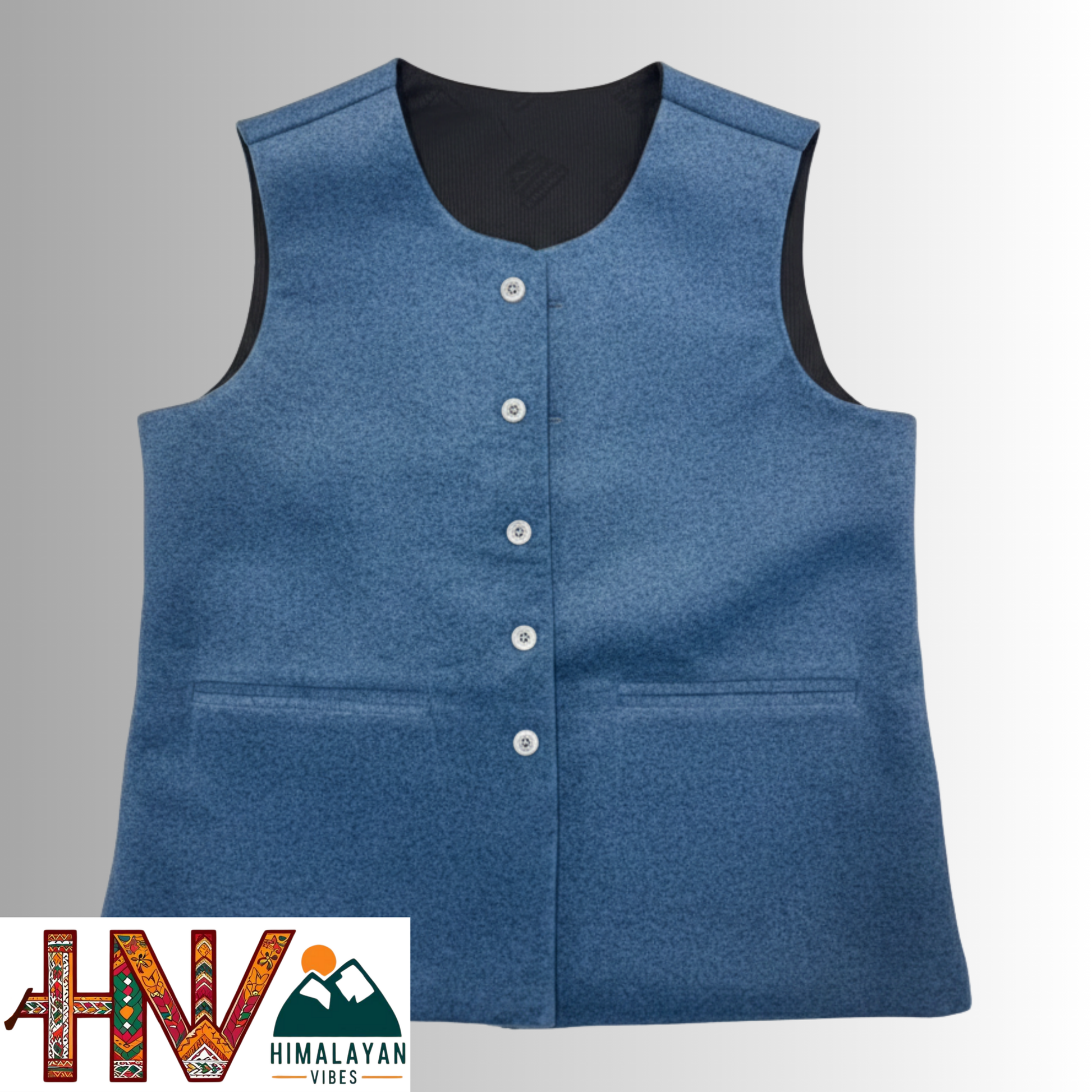 Himachali Plain Blue Sadri for Women - Martin Fabric Ethnic Half Jacket with Pockets
