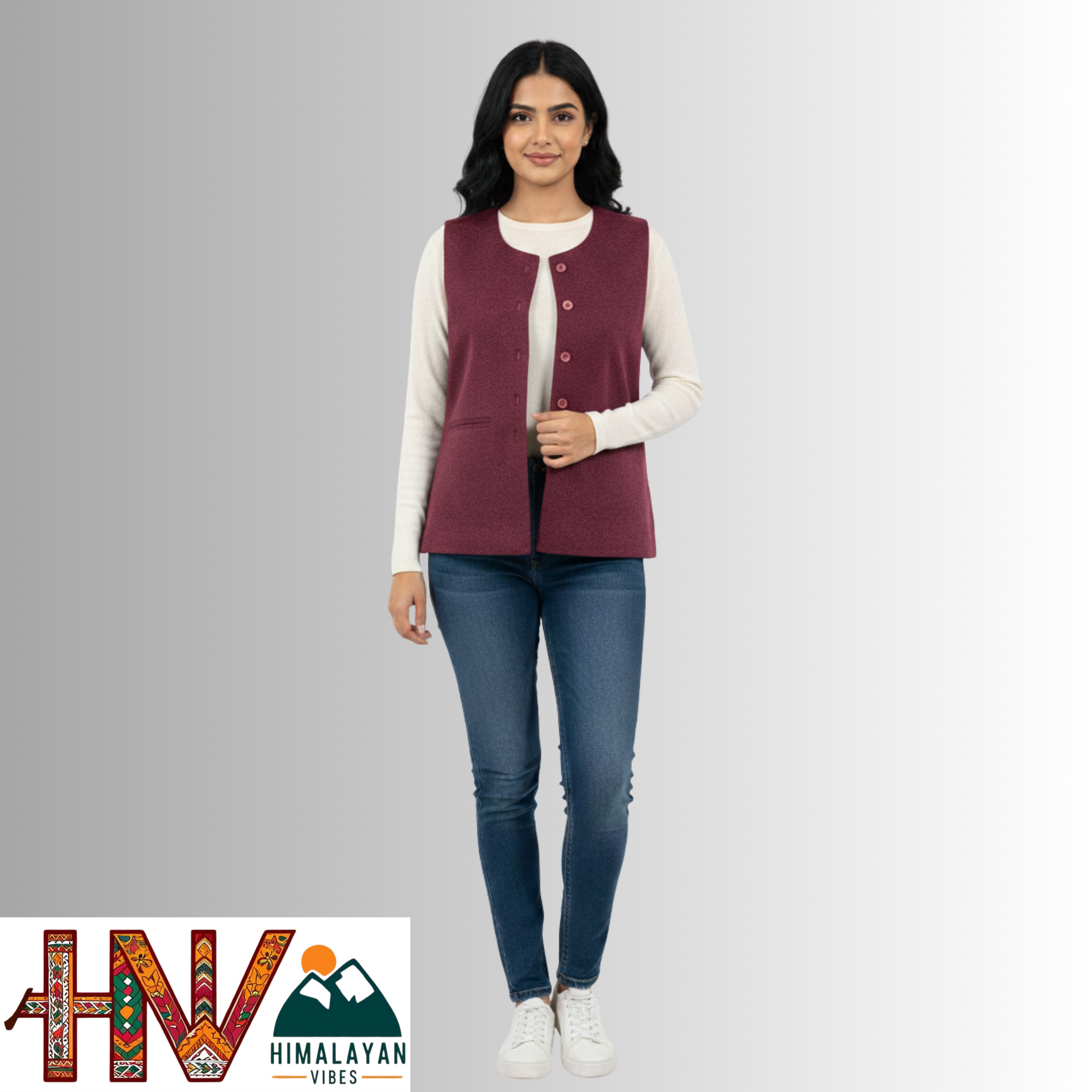 Himachali Plain Wine red Sadri for Women - Martin Fabric Ethnic Half Jacket with Pockets