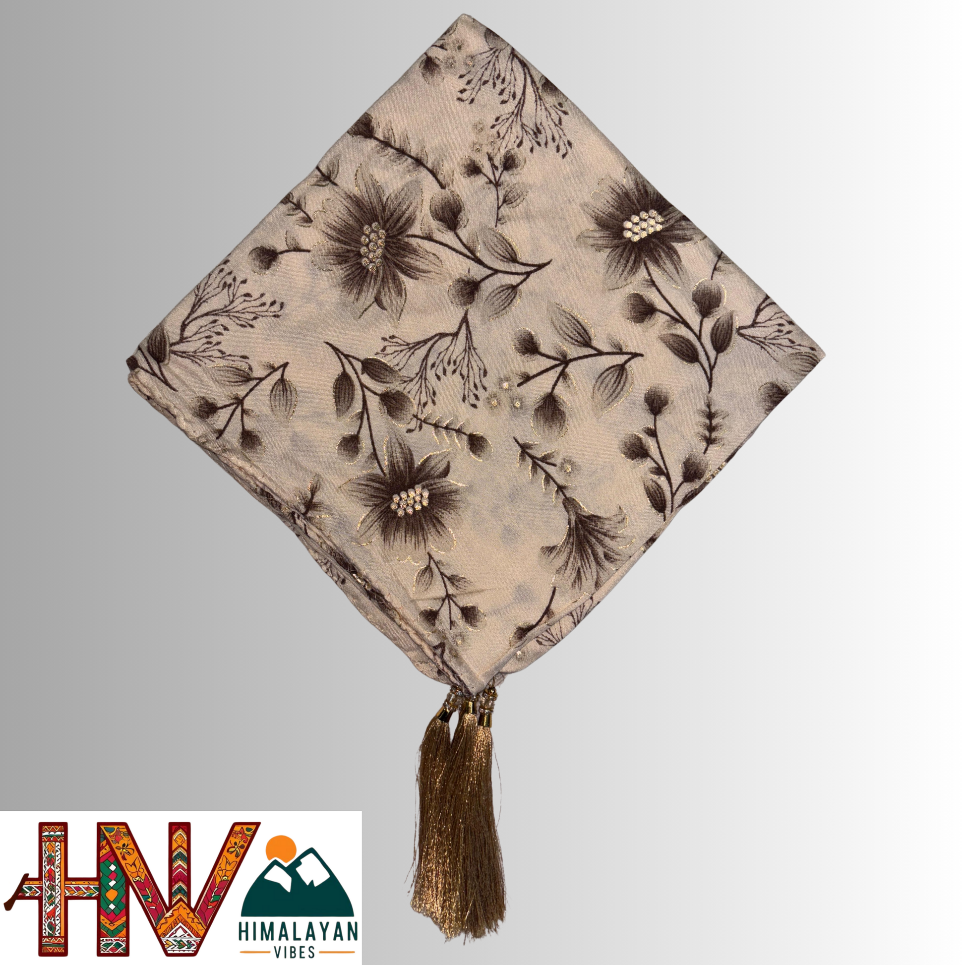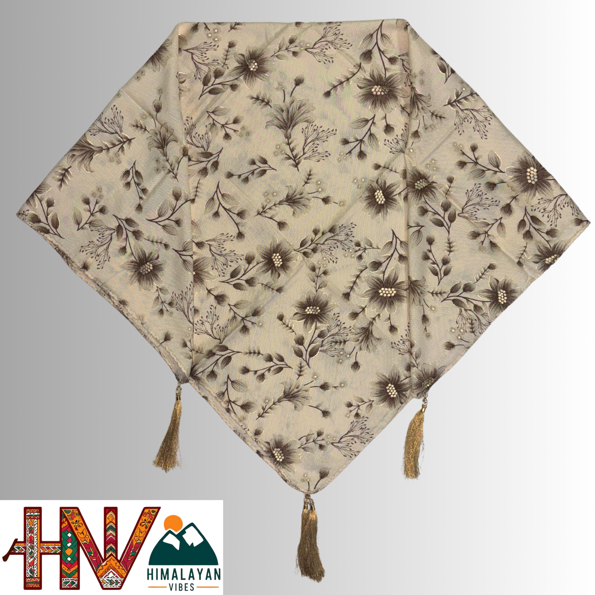Himalayan Vibes Cream Color Himachali Dhatu with Floral Print - Handcrafted Traditional Head Scarf from Himalayas