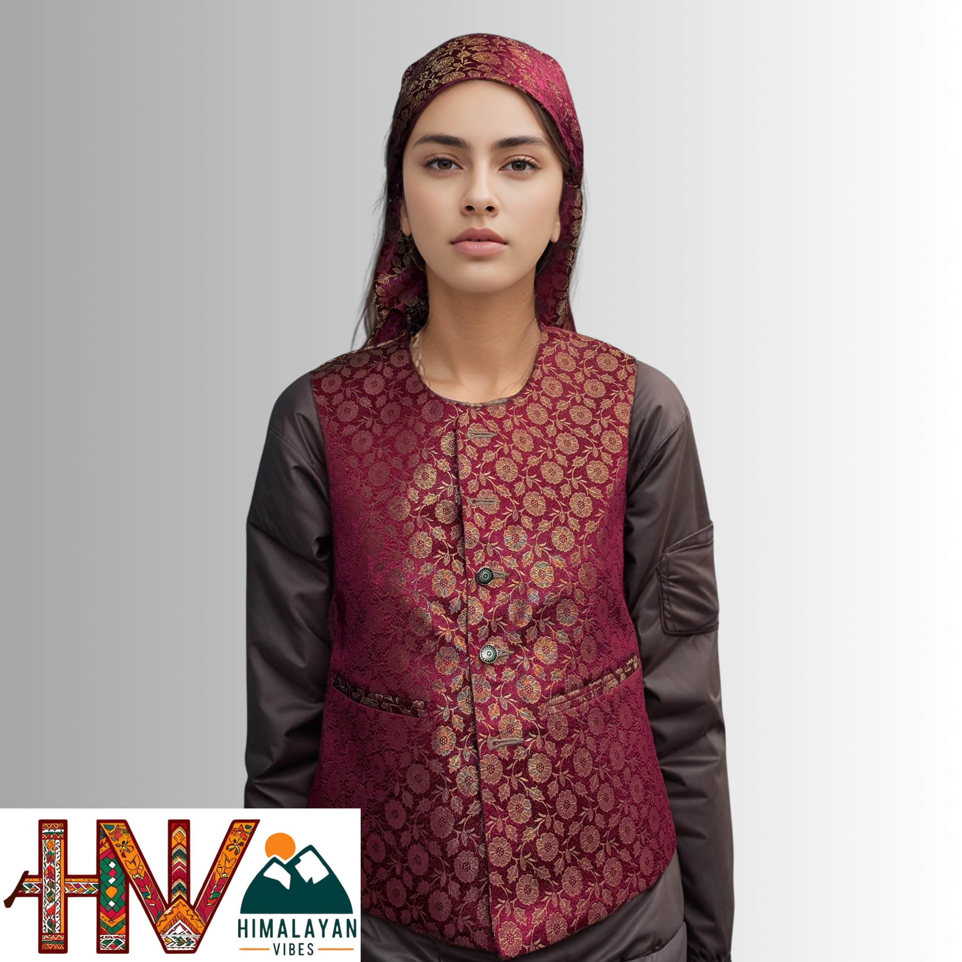 Himalayan Vibes Red Brocade Sadri and Dhatu Combo.