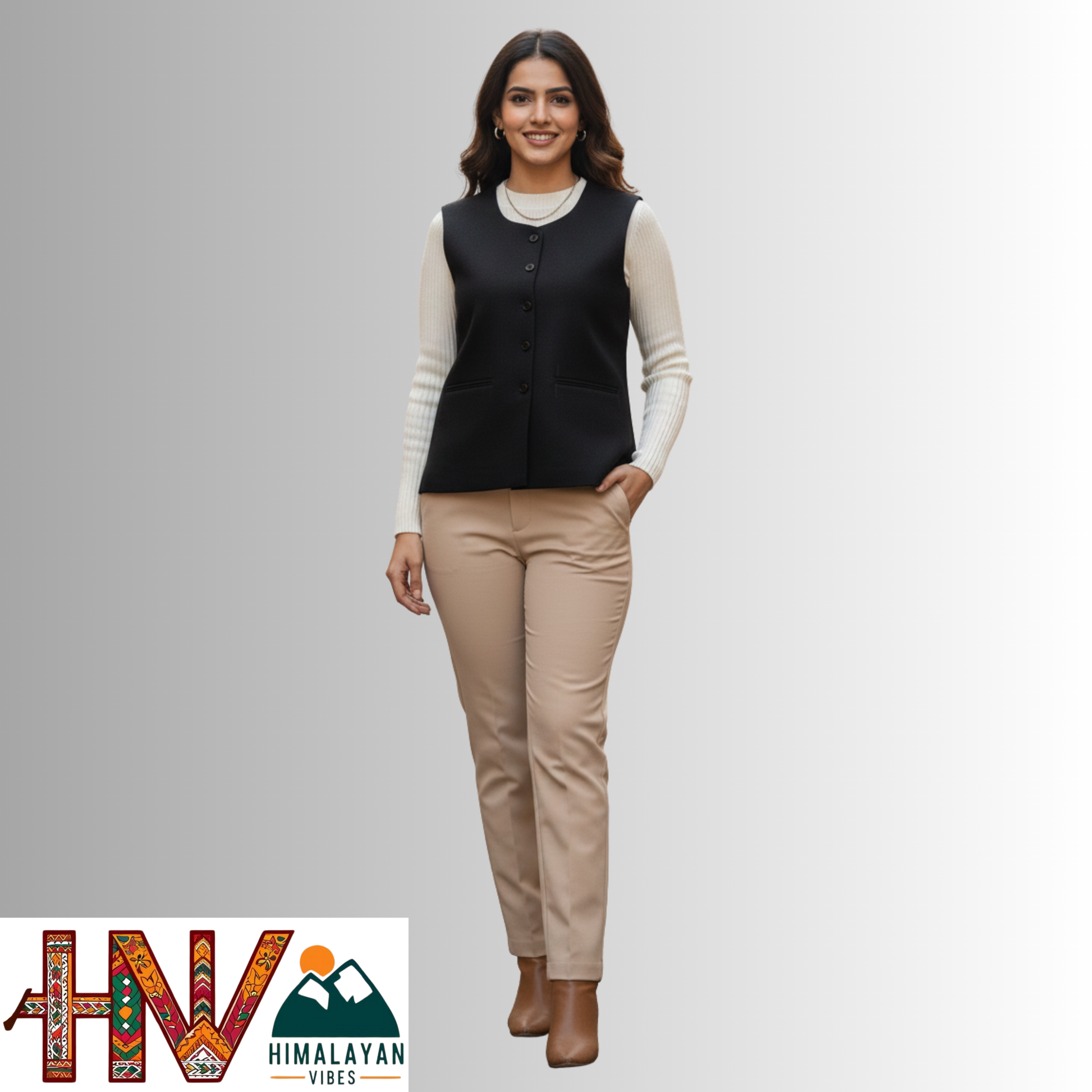Himalayan Vibes Women's Plain Black Pashmina Mix Sleeveless Sadri