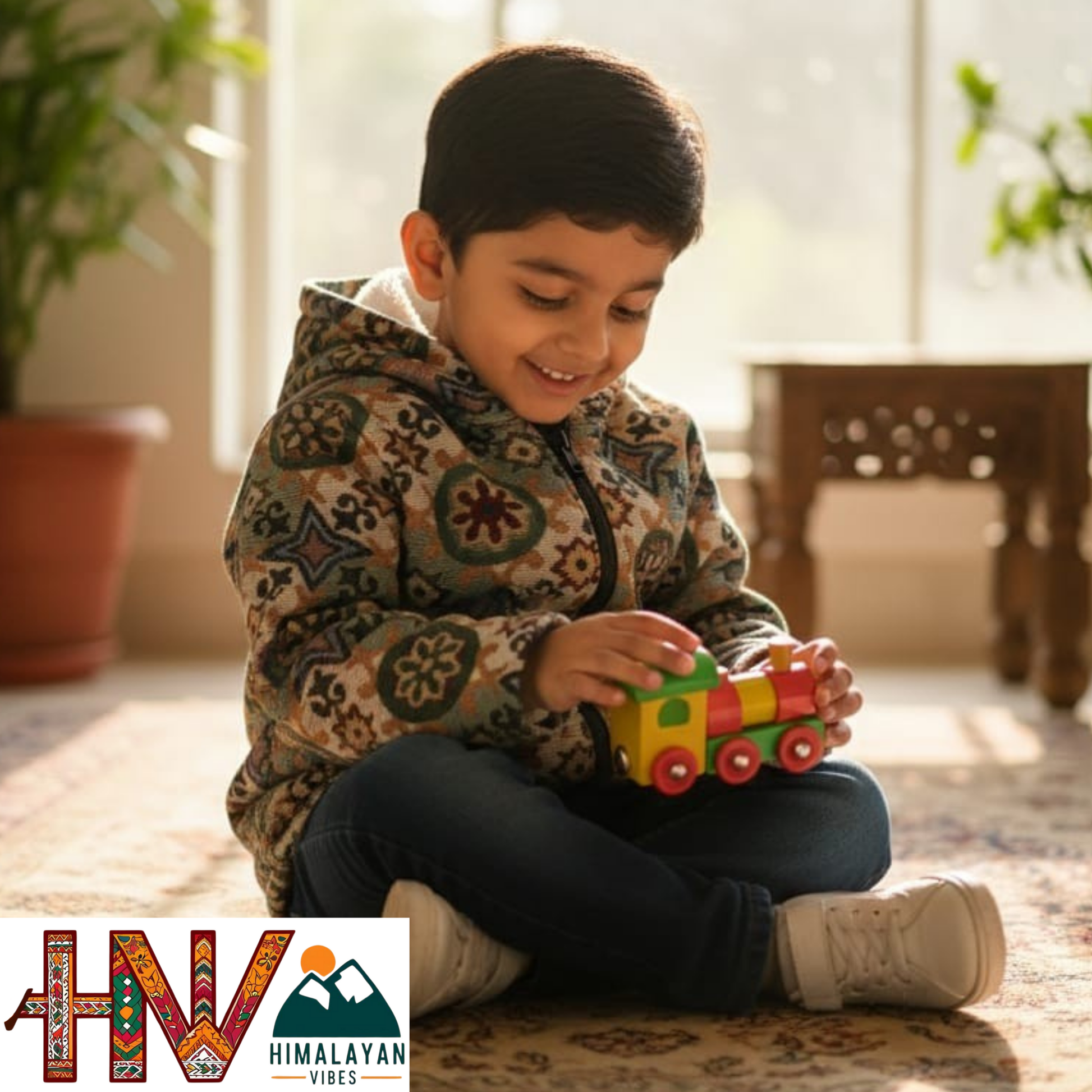 🌈 Cozy & Colorful Kids Blazer Jacket with Fur Lining | Handcrafted in Himachal PradeshKeep your little one snug and stylish with our vibrant Kids Blazer Jacket, a perfect blend of warmth and playful design! This eye-catching jacket features a durable colorful blazer fabric on the outside, adorned with a fun, intricate paisley pattern that kids adore.Designed for ultimate comfort in chilly weather, it boasts a luxuriously soft fur inner lining that provides exceptional warmth without being bulky. Each jacket is lovingly handcrafted by skilled artisans in Himachal Pradesh, ensuring authentic quality and unique character in every piece.Ideal for everyday wear, festive occasions, or mountain adventures, this warm and cozy jacket offers both economical pricing and high durability. Give your child the gift of comfort, color, and Himachali craftsmanship!