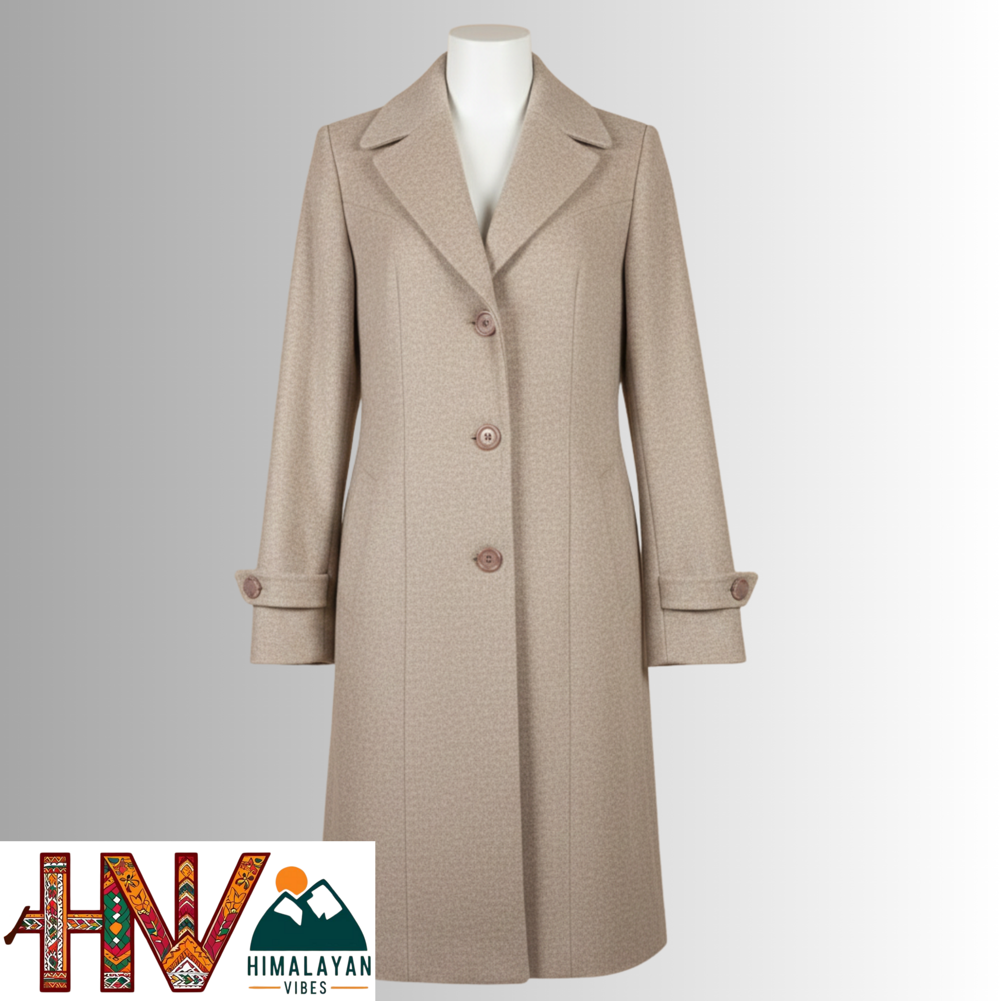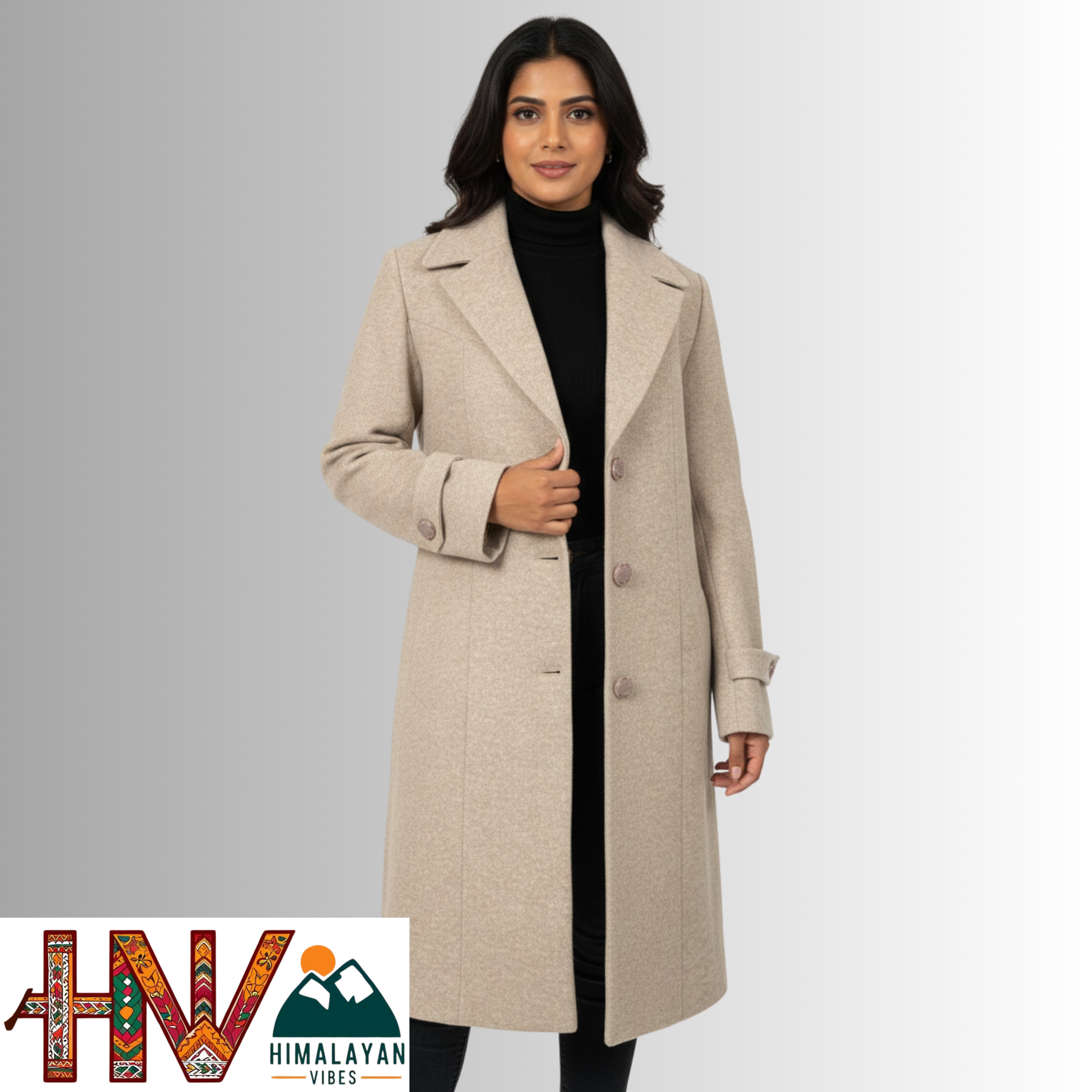 Women’s Long Woolen Coat – Premium Himachali Wool | Elegant Winter Wear By Himalayan Vibes